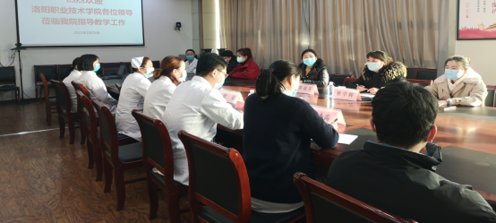 医学院班子成员分成两组,张彦芳院长一行先后深入洛阳市中医院、河科大一附院、洛阳市第六人民医院、洛阳市新区人民医院;李世恩书记一行先后深入偃师市中医院、河科大二附院、洛阳市中心医院。每到一处,他们与实习医院领导及医教科管理人员座谈,听取实习生在医院的表现、实习生在知识技能方面存在的问题、医院对人才培养方案的建议;与实习生座谈,了解学生实习生活、老师带教情况、科室轮转安排情况、疫情防控中的困难、对春节假期的要求、就业的意向及打算等,领导们针对学生提出的问题一一解答,要求同学们在做好疫情防控的基础上,掌握正确学习方法,按大纲完成实习任务;严格遵守医院各项管理制度,按医生的标准要求自己,养成高尚医德,练就过硬本领;树立正确就业观,合理制定近期目标和远期目标,将个人的追求融入社会需求中;发扬伟大抗疫精神,做合格接班人。