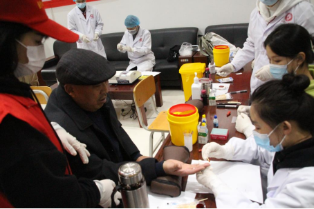 青年志愿者们在学院老师的安排和帮助下迅速展开工作。本次的义诊活动项目主要有测血糖、血型、免费健康咨询、宣传餐桌上的健康知识、如何预防新冠肺炎疫情等。活动中,志愿者们热情、详细的服务态度吸引了众多居民前来咨询、检测。特别是测血型项目最为火热,排队的人络绎不绝,检测的同学也有条不紊的进行着。此次义诊活动惠及社区居民200余人。