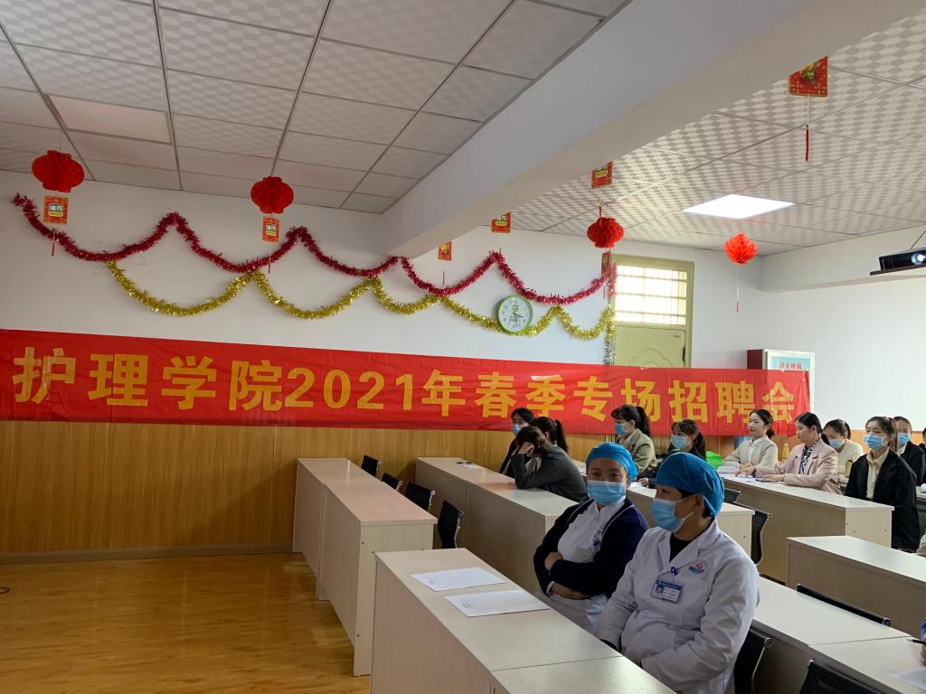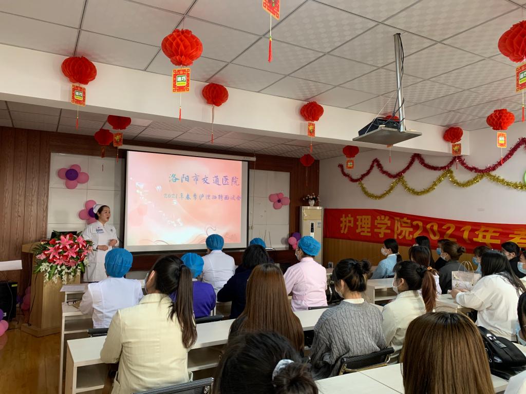 3月30日下午,护理学院2021届应届毕业生洛阳市交通医院春季专场招聘会在洛阳市交通医院住院部6楼报告厅举行。本次专场招聘会有近50名护理和助产专业学生参加,经过面试和笔试的层层筛选,最终有11名学生通过医院选拔,进入试用期。