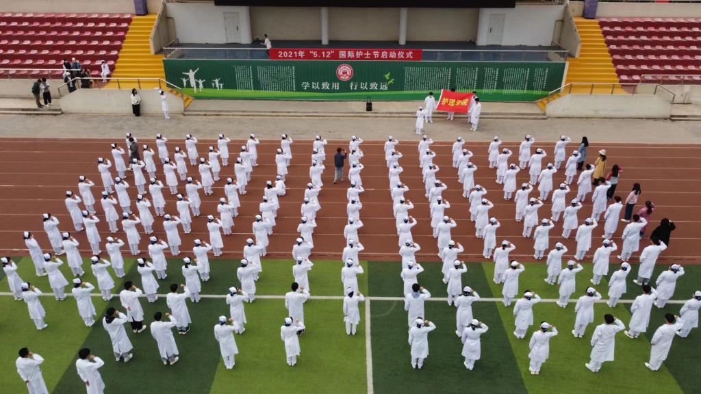 在第110个“5·12”国际护士节来临之际,为用实践行动学党史、颂党恩、跟党走,弘扬南丁格尔精神,传承护理文化,展示白衣天使风采,树立学生专业自豪感和荣誉感,学院学生处、团委、护理学院共同举办庆祝2021年“5·12”国际护士节系列教育活动。4月7日,系列活动启动仪式在运动场举行。护理学院副院长尚艳芳、全体辅导员及100余名学生代表参与。