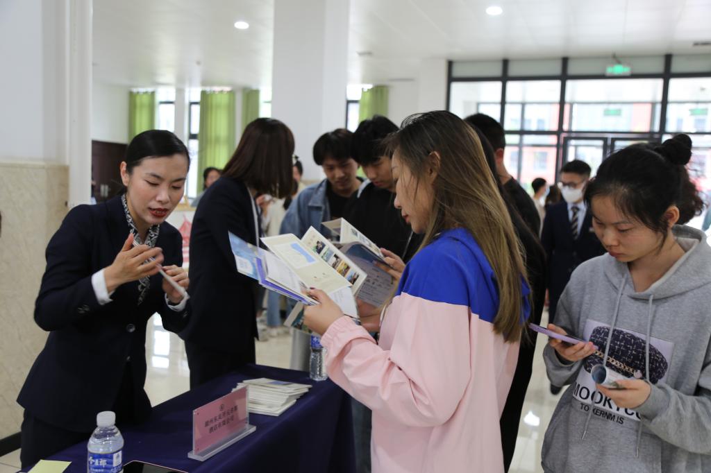 4月15日下午,我院在4号教学楼举行2021届毕业生春季洽谈会。省内外9家用人单位到校进行现场招聘,共提供21个岗位类别的近800个职位,我院700余名毕业生和即将实习的学生到会咨询洽谈。院长王伟浩,党总支副书记兼副院长田应功,副院长张志恒到会场与招聘单位、咨询学生进行沟通交流。