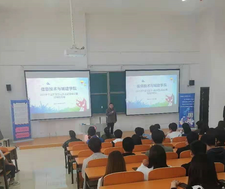 4月15日下午,信息技术与城建学院在1号教学楼407教室召开2021年毕业生实习与就业宣讲会议暨现场招聘会。
