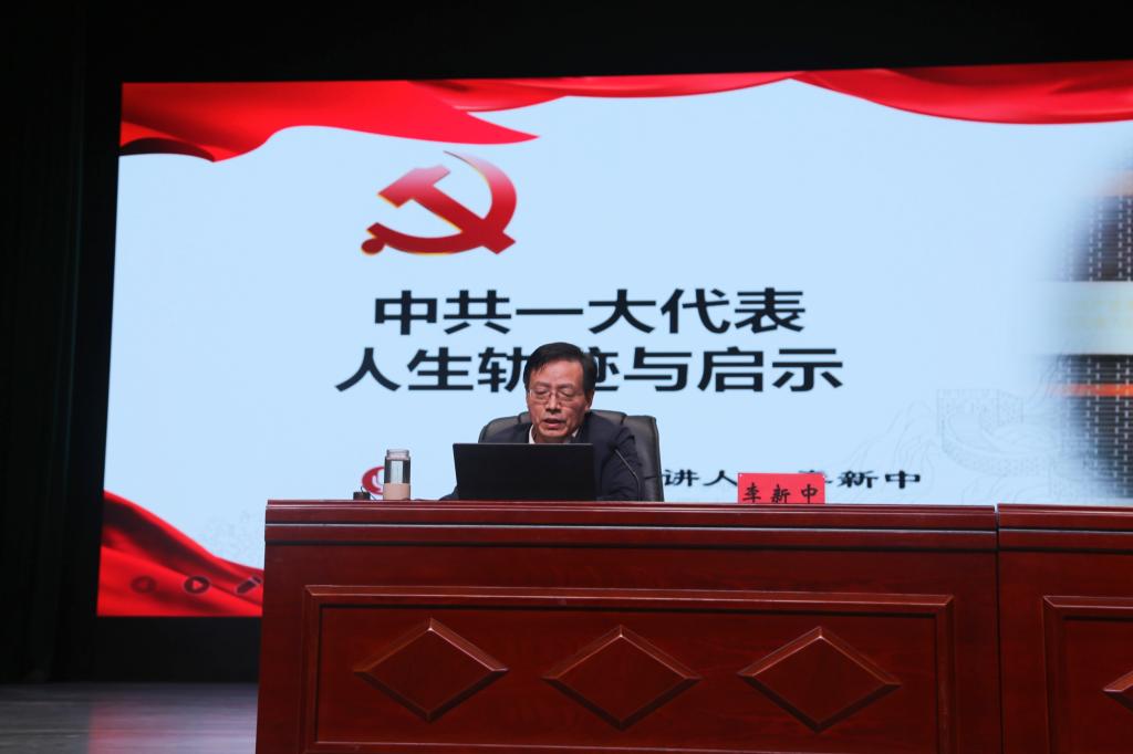 李新中以《中共一大代表人生轨迹与启示》为题,从“红色的起点、13位一大代表的人生轨迹、人生分析与启示”三个方面,解读了中共“一大”的历史背景和伟大意义,分析了中共“一大”代表的沉浮人生。