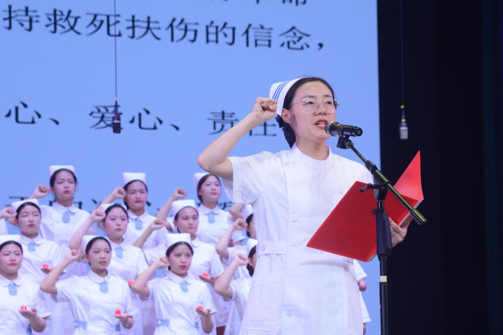 一袭白衣,一顶燕尾帽,用一份真情,倾尽对护理事业的热爱。活动现场,护士礼仪表演环节,护生们用优雅的姿态、端庄的表情、丰富的形式展现护理工作者的风采。通过护理礼仪展示,帮助护生树立礼仪技能意识,引导学生专业能力和综合素质养成。情景剧《最美逆行者》、演讲《百年征程照初心护理生涯绽芳华》、手语舞《听我说谢谢你》、合唱《不忘初心》等节目激发学生将小我融入祖国大我、人民大我中,传承老一辈革命家的优良传统,坚持梦想,坚守岗位,用心呵护每一位患者。