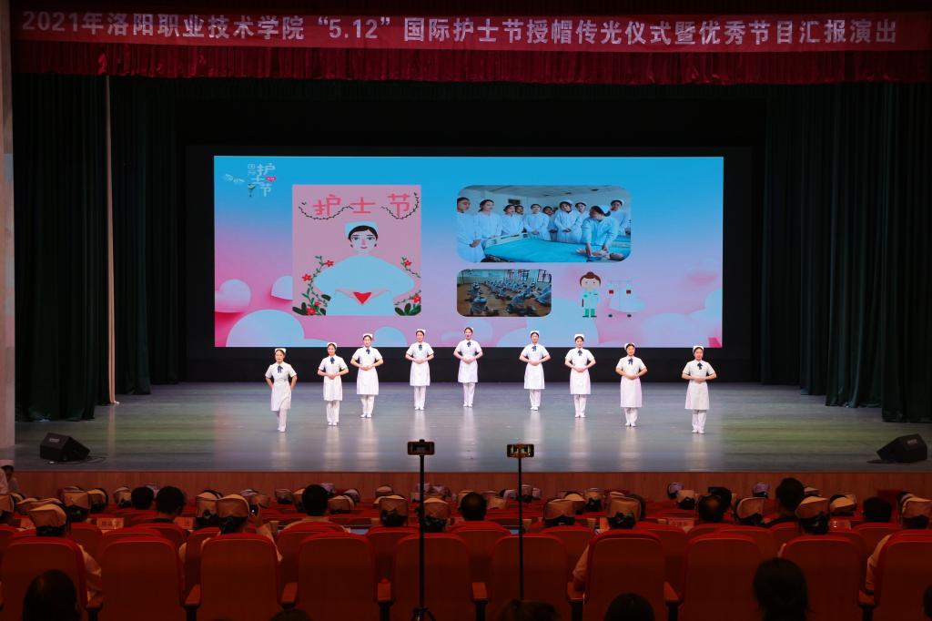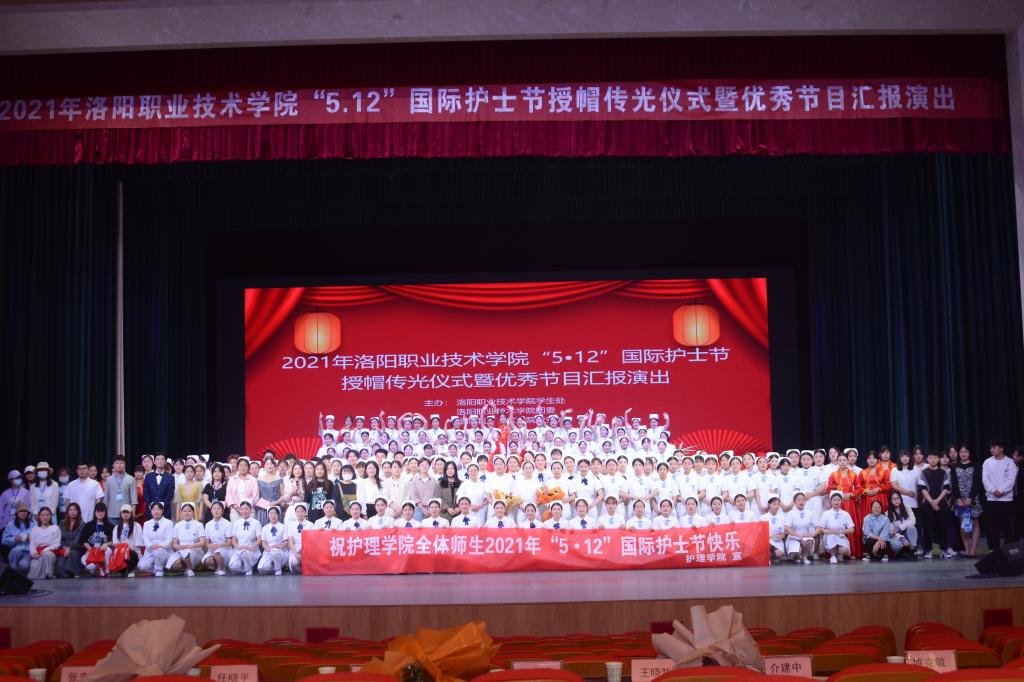 5月6日,由学生处、校团委、教务处主办,护理学院承办的2021年洛阳职业技术学院“5.12”国际护士节授帽传光仪式暨优秀节目汇报演出在戏曲艺术学院戏曲演艺中心举行。校领导任晓平、韩洪涛、韦元民、王晓哲、介建中、张志友、姚克敏出席授帽传光仪式。