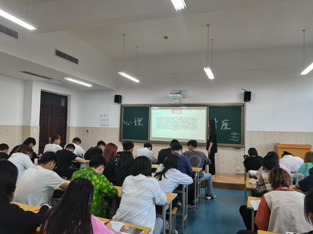 宣讲开始,主持人介绍了“5.25心理健康日”的由来,介绍了普及心理健康常识的重要性,针对目前大学生心理健康的标准和大学生常见的心理压力进行了详细讲解。引导学生根据大学生心理健康标准对比自身状况,有任何心理问题都可以及时联系学院心理危机干预工作小组寻求帮助,必要时可联系校心理健康教育发展中心进行预约咨询。