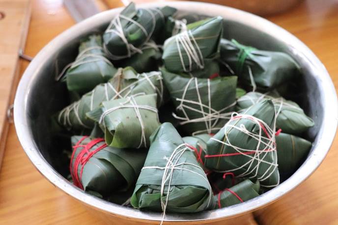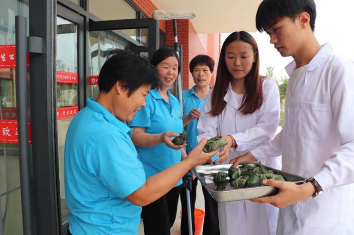 欢乐的包粽子环节结束后,这些包满食品与药品学院学生祝福的粽子送向学校的教师、保安大叔、宿管阿姨的手里,传递这一份端午安康的祝福。