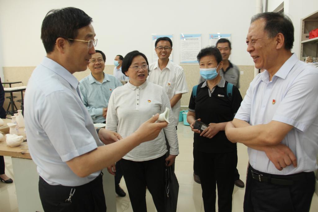 仪式结束后,在文化与旅游学院院长王伟浩和文物保护考古学院院长杨刚亮的陪同下,领导们一行先后参观了文化与旅游学院剪纸社“纸刻初心传承红色——百幅剪纸献礼建党百年”作品、庆中国共产党成立100周年“奋斗百年路启航新征程”党史教育专题百人书法创作现场和文化与旅游学院百件学生文物修复作品。考察了考古探掘实训中心、陶瓷器修复实训室、金属文物修复实训室等处,充分肯定了学院的办学水平,对文化与旅游学院开展非遗剪纸技艺传承、搭建文化育人平台建设等方面的成果给予高度评价。