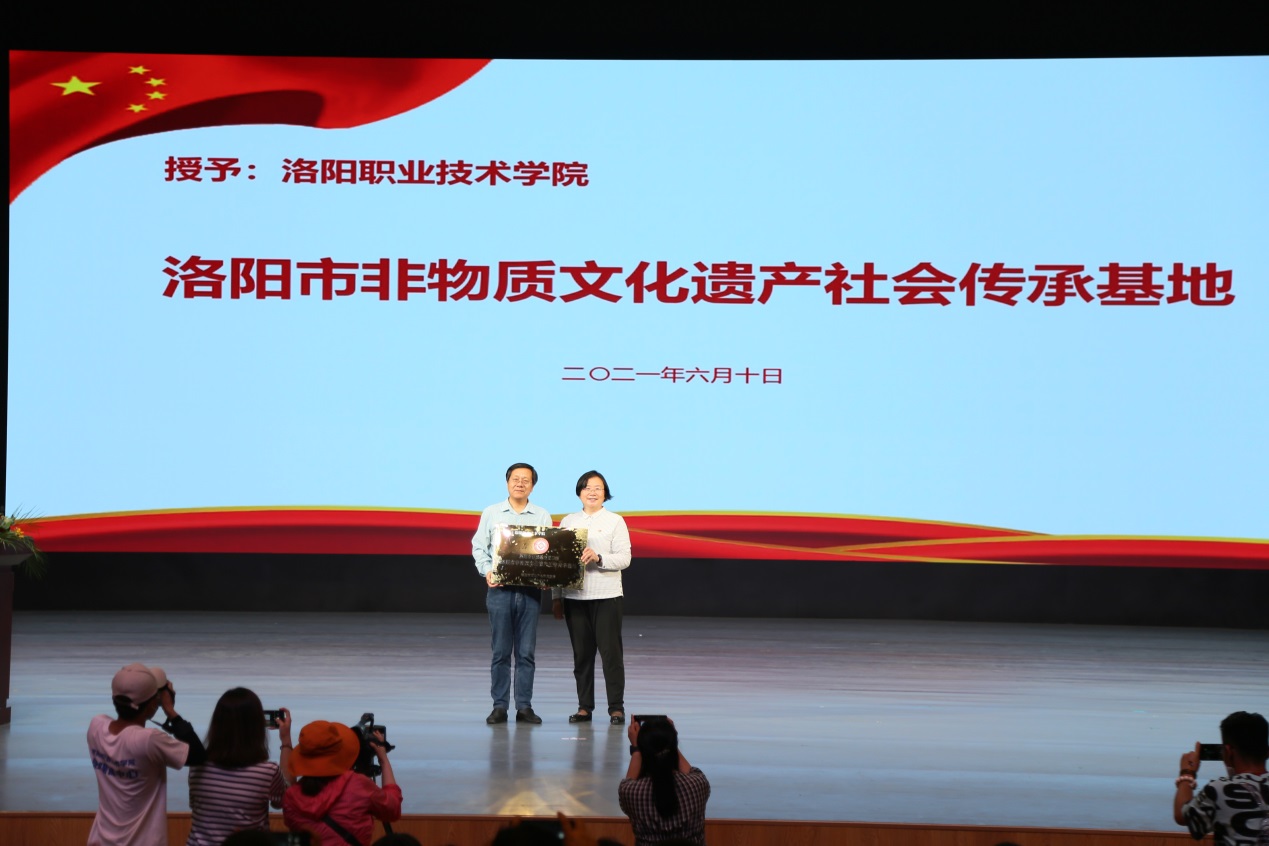 本次活动由洛阳市文化广电和旅游局主办,洛阳职业技术学院承办,围绕“人民的非遗 人民共享”主题,开展了丰富多彩的非遗展示活动。王丽娟与程相朝分别代表市文化广电和旅游局和我校签署了战略合作协议,同时举行了河南省非物质文化遗产示范传习所、展示馆、洛阳市剪纸艺术传承研习基地、洛阳平乐正骨博物馆和洛阳市非物质文化遗产社会传承基地授牌仪式。