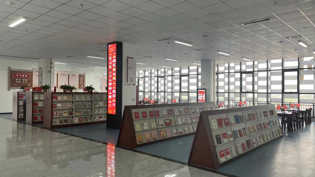数字阅读体验区配置了水墨屏、瀑布流、电子图书阅读机等现代化设备,提供海量的线上党建及思政教育电子图书和数据库资源。