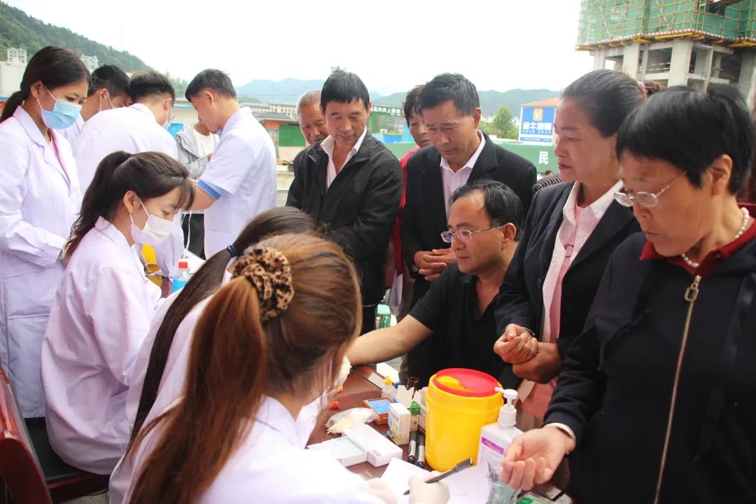 上午,志愿者们提前到达活动地点悬挂横幅、搭建义诊台,设备就位后,志愿者们在带队老师的安排和指导下迅速投入工作,为乡亲们测量血型、血糖、血氧和尿常规等。老师们耐心询问受测乡亲既往病史,及时发现潜在病情并给出治疗建议和用药指导。义诊过程中,志愿者们还宣传了预防高血压、糖尿病等知识,向乡亲们普及了健康生活方式和生活习惯,倡导大家加强自我保健,适当运动、规律用餐,合理搭配膳食结构,保持营养平衡,保持乐观的心态,改变不良生活习惯,拥有健康的心态、健壮的体魄。