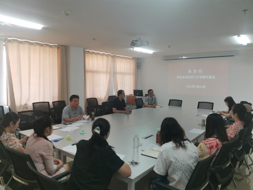 6月26日上午,商学院党总支书记、院长王军华组织召开商学院学生安全排查工作专题布置会。
