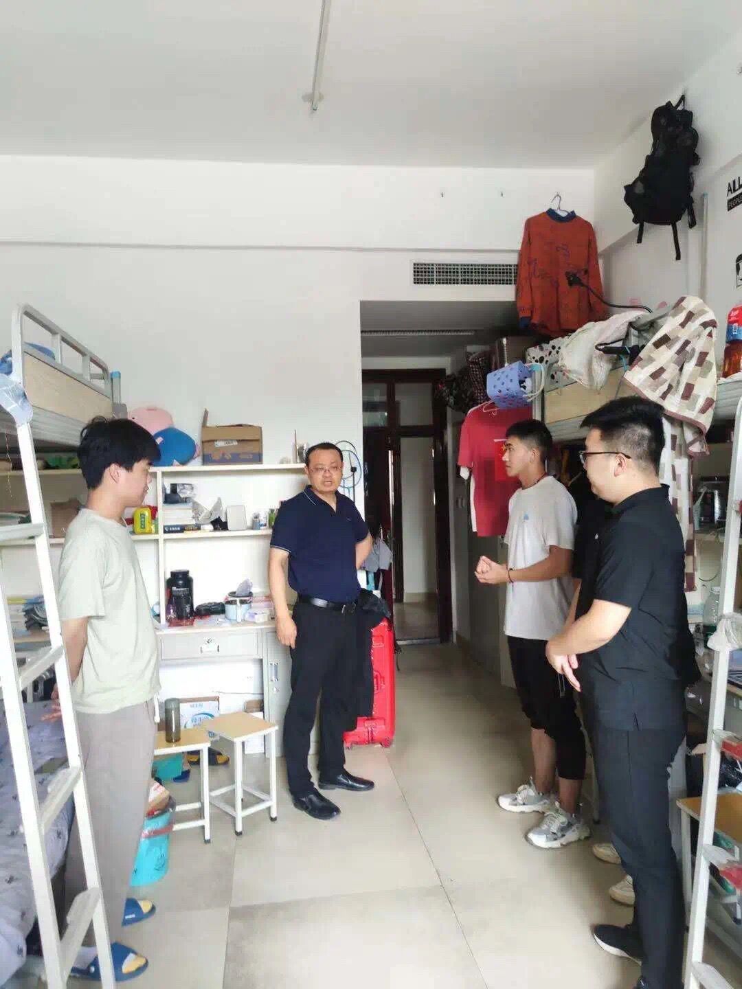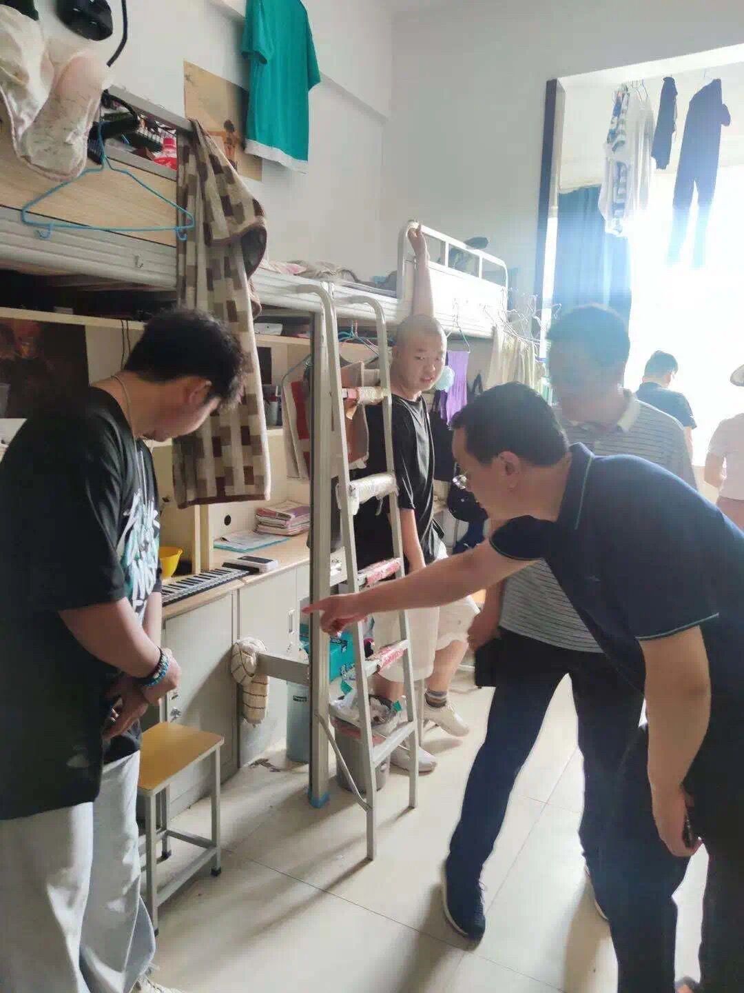 会后,商学院领导及全体专兼职辅导员深入男女生宿舍,全面排查校园安全隐患,叮嘱学生不使用违规电器,重视用电用水安全,提升防诈防骗意识,从源头上化解安全隐患,切实保护生命和财产安全,提醒各位同学要定期做好卫生清洁,营造良好的宿舍环境,创建安全、文明、舒适的生活环境。