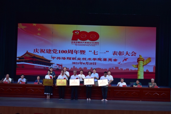 大会在庄严的国歌声中拉开序幕。副院长韩洪涛宣读《中共洛阳职业技术学院委员会关于表彰2020-2021年度优秀共产党员 优秀党务工作者 先进基层党组织的决定》和《中共洛阳职业技术学院委员会关于授予计划财务处党支部等5个党支部为“五星支部”“样板党支部”的决定》。