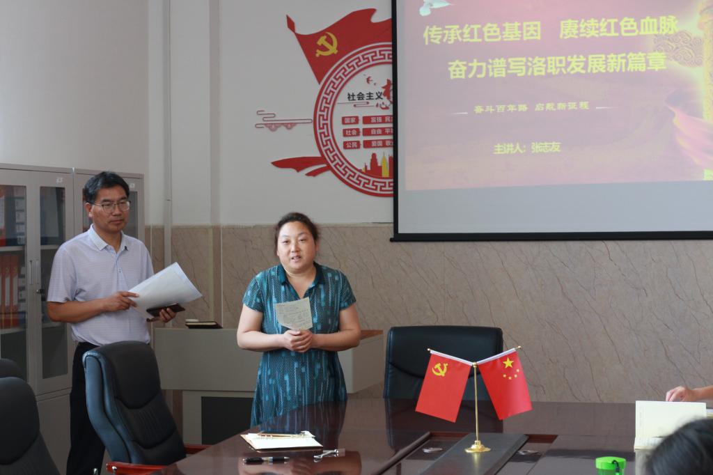 张志友从“党在我心中、永远跟党走”出发,围绕习近平总书记有关“用好红色资源传承好红色基因,把红色江山世世代代传下去”和“三个深刻领悟”的论述和讲话,带领大家感悟红色精神,汲取红色力量,传承红色基因。他紧密结合学院发展新形势和新阶段,重温“团结协作、顽强拼搏、开拓创新、奋勇争先”的洛职精神,激励教师们要将洛职精神内化于心、外化于行。