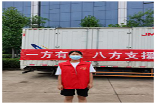 20级新能源汽车技术302班申楚琪同学,投身到郑州登封市防汛救灾工作中,与当地志愿者一道,3天2夜不停歇参与救灾工作,娇小身躯勇敢担当。