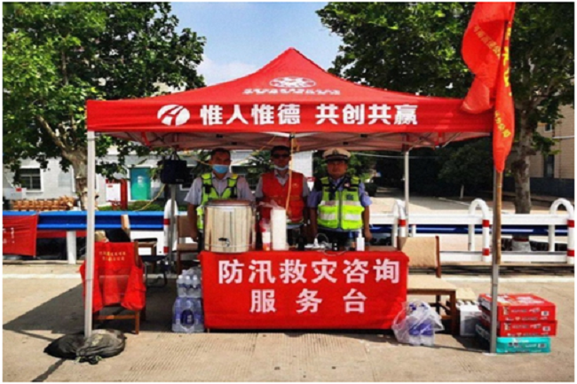 20级汽车检测与维修302班陈哮锋同学,投身驻马店市防汛救灾工作中,与民警同志一道,为受灾群众发放纯净水、食品,提供充电通讯条件。