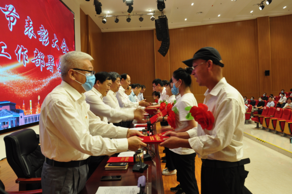 副院长介建中宣读了《洛阳职业技术学院关于表彰2020-2021学年优秀教师和优秀教育工作者的决定》等表彰文件。学院领导分别为“优秀教师”“优秀教育工作者”“市级优秀教师、市级以上荣誉获奖者”“从教满三十年”教师代表及首届我校“教学名师”颁奖。优秀教师代表张卫卫发言。