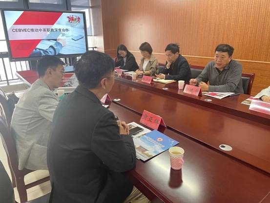 10月9日下午,中英职业教育合作发展委员会联席主席、中国区英国职业教育卓越中心总裁黄亚辉;中国区英国职业教育卓越中心副主任王子杰一行来访我校。学校副院长介建中热情会见了来访客人并进行了交流,国际教育中心、科研外事处及教务处相关人员陪同座谈。