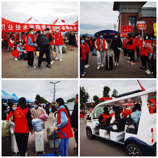 学校在火车站、高铁站等交通枢纽设置了迎新接站点,接站老师和志愿者安排车辆直达各校区接送新生。校团委组织志愿者引导新生完成消毒、体温检测、两码及核酸检测报告核验等工作;在学校各个角落,随处可见统一着装的学生志愿者们耐心细致地为新生提供路线引导、报到咨询、行李运送等服务,成为校园里靓丽的一道风景线。后勤管理处组织龙翔物业服务人员为新生及家长准备茶水及点心。保卫处协调伊滨区交警大队、李村镇派出所保障校门口交通秩序,组织巡逻车辆帮助学生运送行李。学工助理团为学生准备了热水及报到指南。各部门与各二级院部紧密协同、多措并举,全方位、立体化保障新生顺利完成入校流程。
