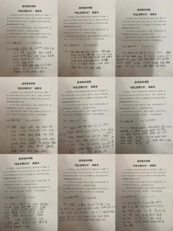会后,学生纷纷在“学生文明行为”承诺书上签字,并表示会做一名文明礼貌的大学生。