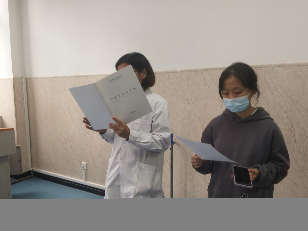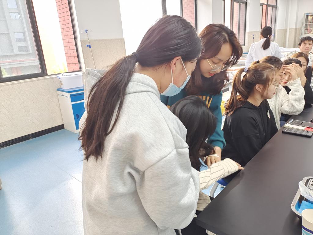 演练从安全防护知识宣教、“晕血晕针”和“包扎止血”演练等方式开展。演练第一个部分内容为在基护实训室内练习静脉输液操作时学生“晕血晕针”后的应急处置;第二部分内容为学生意外受伤、现场演练包扎固定应急处置,并向实训老师报告事故。