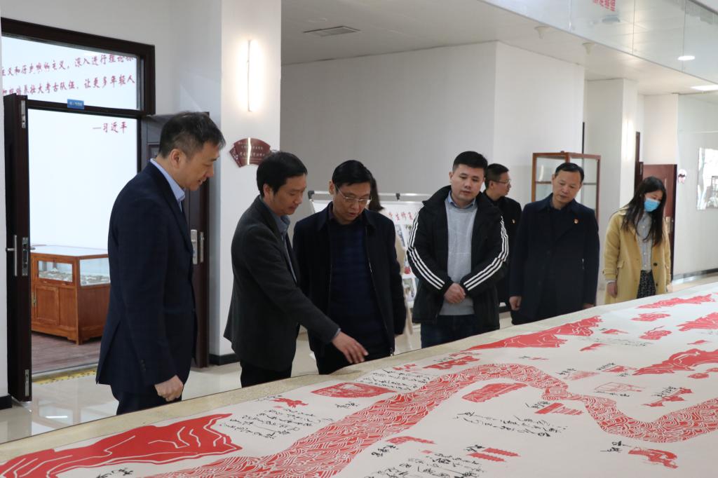 督察组一行参观了陶瓷器制作实训室、考古探掘技术实训中心、青铜器文物修复实训室等地,在一楼大厅还欣赏了党史百幅剪纸作品和《黄河情》巨幅剪纸长卷。