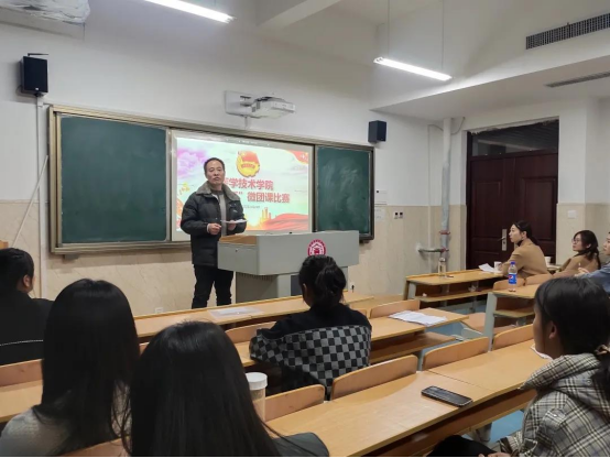 比赛结束后,房长显对本次比赛进行了高度肯定和精彩点评,对参赛选手和现场观众提出了“三个注意”和“三个提高”,并指出今后要多举办这类活动,达到“以赛促学,以赛促练”的目的,切实提升我院共青团员的精神面貌和综合素质。