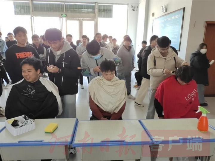 原来因疫情防控需要,本学期学生返校后,洛阳职业技术学院实行封闭式管理,理发成为困扰师生的“头等大事”。机电工程学院的宋冠儒、胡晴晴、史成栋三名同学,主动联系辅导员,称假期自己曾在理发店打工学过相关手艺,愿意为同学们理发。