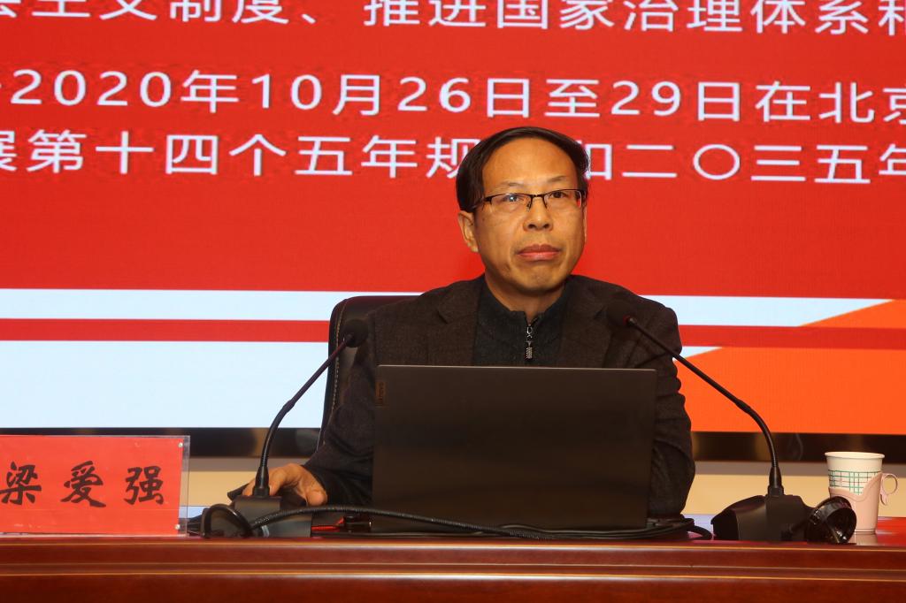 12月16日,党的十九届六中全会精神宣讲走进我校。河南科技大学马克思主义学院教授、硕士生导师梁爱强作精彩报告。校领导朱美荣、韦元民、余江宁、邓卫国、朱豫豪、王晓哲以及正科级以上干部参加听讲。党委副书记任晓平主持会议。