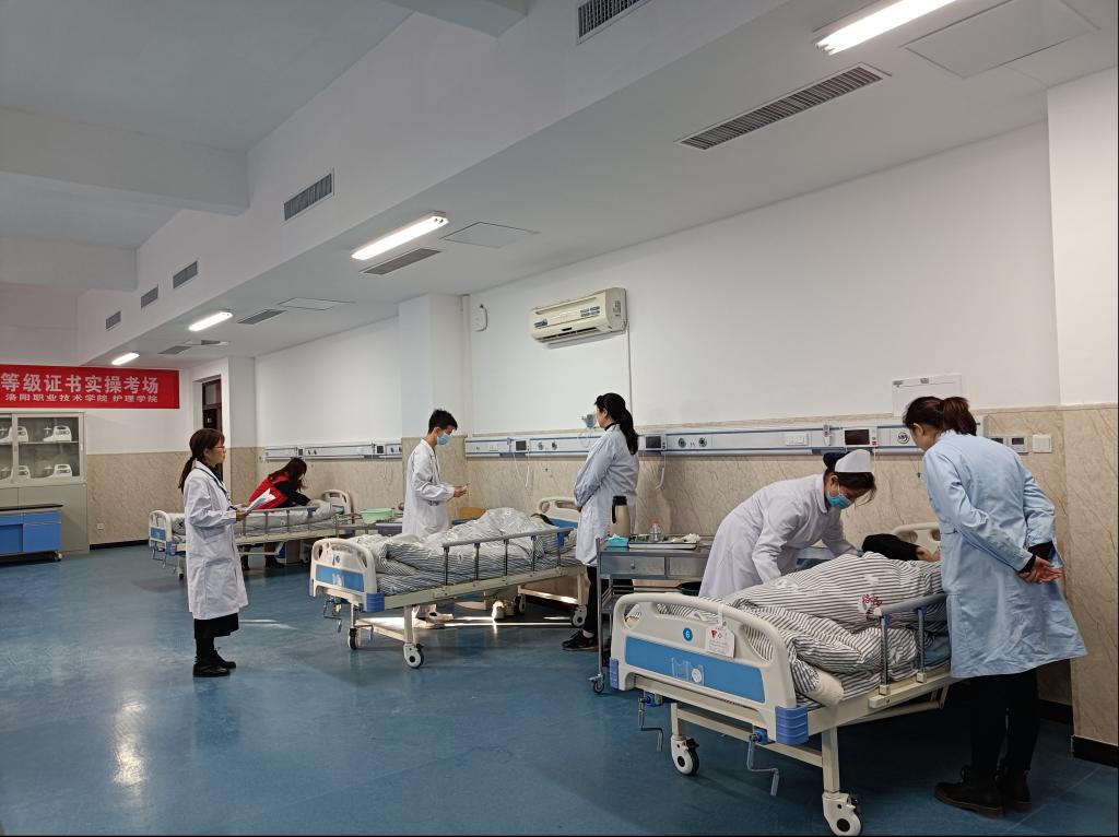 此次考试共分理论和技能两个考试环节,分别在商学院415、417教室及护理学院实训楼203、205教室进行,智慧健康养老教研室全体教师根据要求制定考核方案。授课教师结合学生平时上课表现及考试情况严格挑选学生,加强学生理论与技能培训,考前给予强化辅导,确保了此次考试圆满成功。