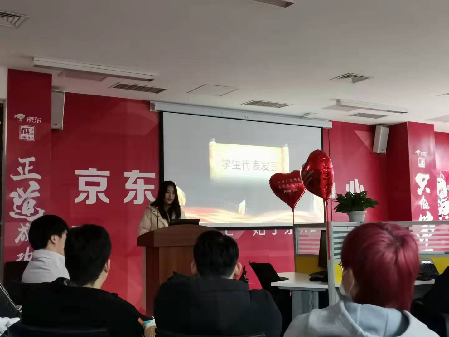 优秀学员代表发表获奖感言,分享自己平时上线的经验,让我们手拉手一起进步。学员们一致认为:京东校园实训中心为学生提供了良好的实训机会,学生们在京东班一边学习理论一边开展业务,真正的实现了理论联系实际,从做中学,为学校的校企合作开了一个好头,也提供了一个很好的范本。