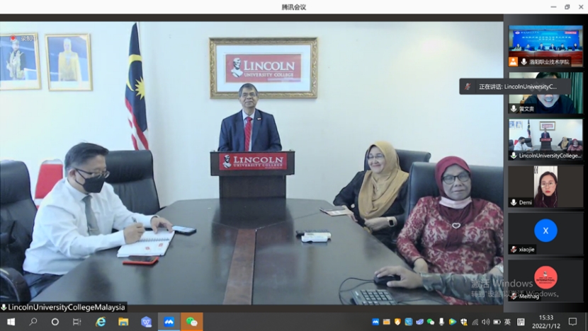 1月12日,我校与马来西亚林肯大学举行国际合作线上洽谈会。院长赵健,副院长李保安参加洽谈会, 教务处、科研外事处国际教育中心、护理学院负责人等相关人员参与会谈。