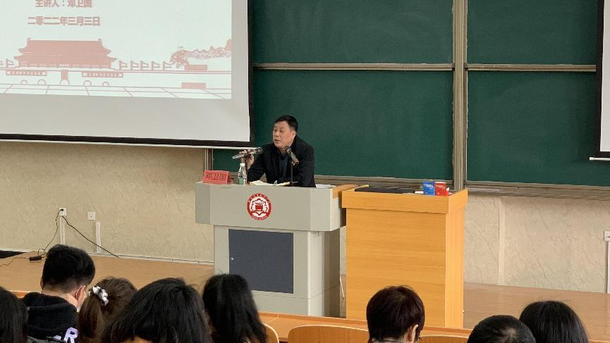 3月3日,纪委书记、监察专员邓卫国在3号教学楼410教室为商学院师生上“开学第一课”,商学院全体教职工、入党积极分子、团学组织学生骨干、各班班团干部等近二百余人参加学习。