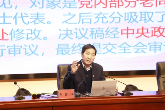 宣讲会上,刘振江以《中国共产党的百年奋斗重大成就和历史经验》为题,以丰富的史实、生动的案例、翔实的数据作了宣讲报告。