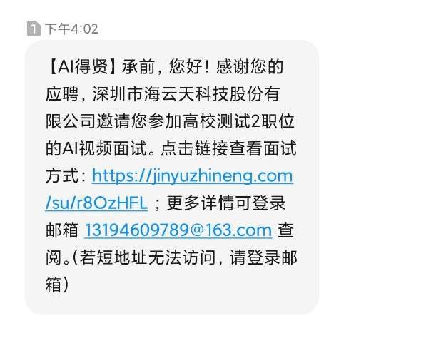 亲爱的考生你们好,欢迎你们参加本次⾯试,在正式开启本次⾯试开始之前请检查你是否收到邮件与短信(内容样式与下图相似)。