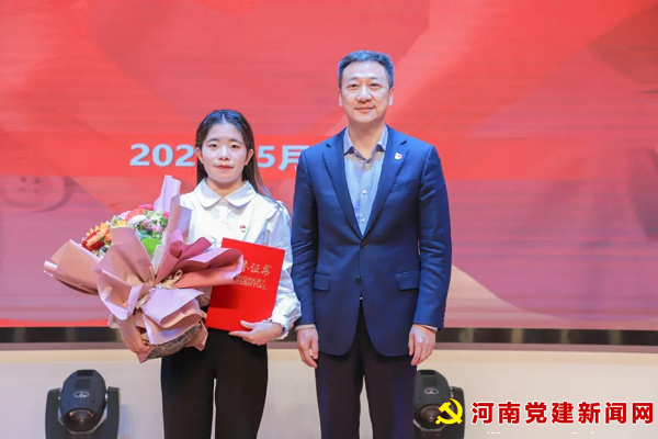副院长张志友宣读《关于表彰2021-2022年度洛阳职业技术学院“最美大学生”的决定》,院长赵健为王巧玉颁发洛阳职业技术学院“最美大学生”证书。