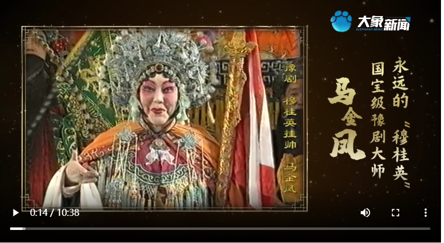 马金凤先生是德高望重的国宝级豫剧大师,是豫剧“五大名旦”之一,豫剧“马派”艺术创始人,中国戏曲“帅旦”行当的开先河者,“豫剧”国家级非物质文化遗产代表性传承人,曾获“文化部终身艺术成就奖”“德艺双馨艺术家”等多项殊荣。其代表剧目《穆桂英挂帅》《花打朝》《花枪缘》在河洛大地上拥有广泛的群众基础,影响海内外。2022年5月29日,马金凤先生因心力衰竭在青岛病逝。
