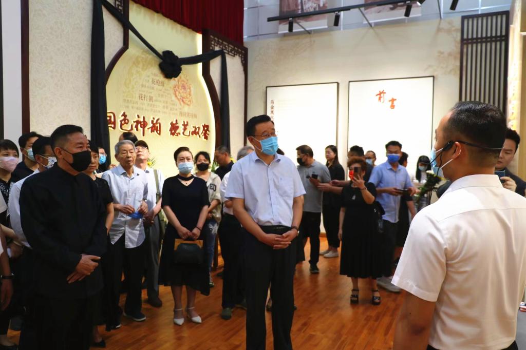 在马金凤戏曲艺术博物馆,全体来宾肃静,面向马金凤大师雕像鞠躬默哀。博物馆内陈列的一张张马金凤先生生前演出照片、一件件演出道具、一段段演出视频让大家潸然泪下。