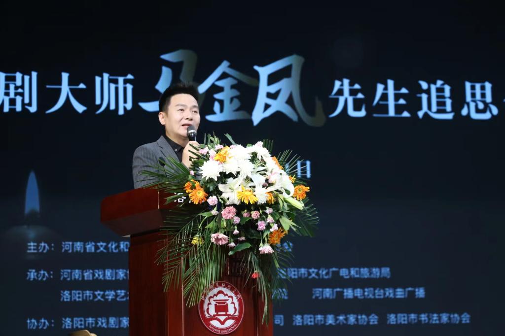 王飞在致辞中代表洛阳市委、市政府,再次对马金凤先生的逝世表示深切的哀悼,向马金凤先生的亲属表示深切的慰问。王飞指出,马金凤先生始终心系舞台,坚持以人民为中心,把精品奉献人民,塑造了众多舞台艺术形象。她始终不忘初心、牢记使命,以党和国家利益以及工作需要为重,把毕生精力奉献给中国豫剧舞台和观众,宣传党和国家的政策,推动和推广豫剧表演艺术,丰富广大群众的文化生活,为促进和弘扬中国传统文化做出重大贡献,培养了大批豫剧名家名角。马金凤这朵“洛阳牡丹”把毕生奉献给了艺术和人民,她的逝世不仅是洛阳文艺界的重大损失,更是河南乃至全国戏曲界的重大损失。马金凤先生虽然离我们远去,但她卓越的艺术实践、崇高的艺术追求、高尚的精神境界,将随着她留下来的珍贵艺术作品和精神财富流芳百世。