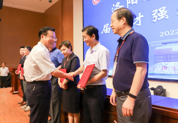 会上还公布了《洛阳职业技术学院人才强校战略实施方案》。方案指出,洛阳职业技术学院师资队伍建设要在三年内实现“筑高原、起高峰、强素质、创品牌、五达标”任务,即人才强校“31535”工程。一是要高起点引进人才300名。到2025年,引进博士100名,优秀硕士140名,专业带头人50名,高技能人才10名;二是力争引聘10名省级领军人才和拔尖人才,培育10个校级教学科研团队,建成10个省级科研平台或省级教科研团队;三是要实施中青年教师教学科研竞赛能力、双师型教师能力、服务管理学生能力、新教师团队建设能力、课程思政能力等五个能力提升;四是要持续加强师德师风建设工作,努力打造“红烛传承”“师德讲堂”“五老·三爱”师德教育品牌;五是要实现师生比、双师比、兼职教师比、学历结构、职称结构等师资队伍建设的5个达标。