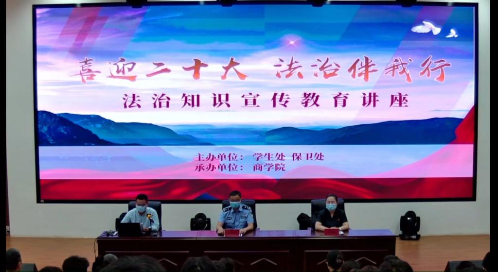 为进一步推进校园法治宣传教育,提升学生法治意识和法律素养,落实三全育人成效,9月30日下午,我校在大学生活动中心二楼心理剧场举办“喜迎二十大,法治伴我行”专题法治知识宣传教育讲座,讲座面向全体在校生,通过线下线上方式同步进行。