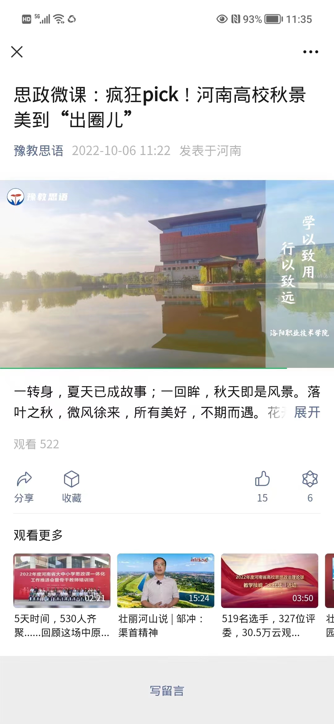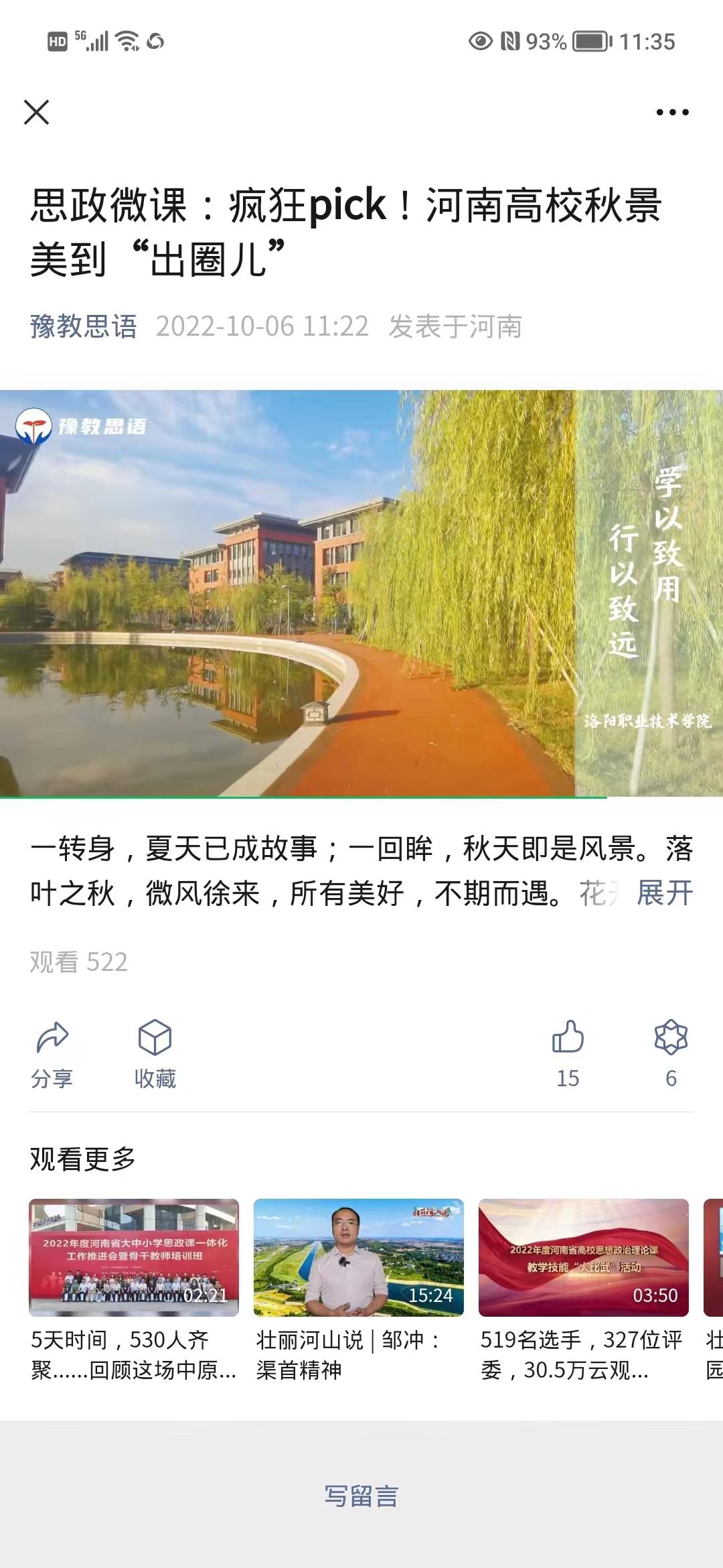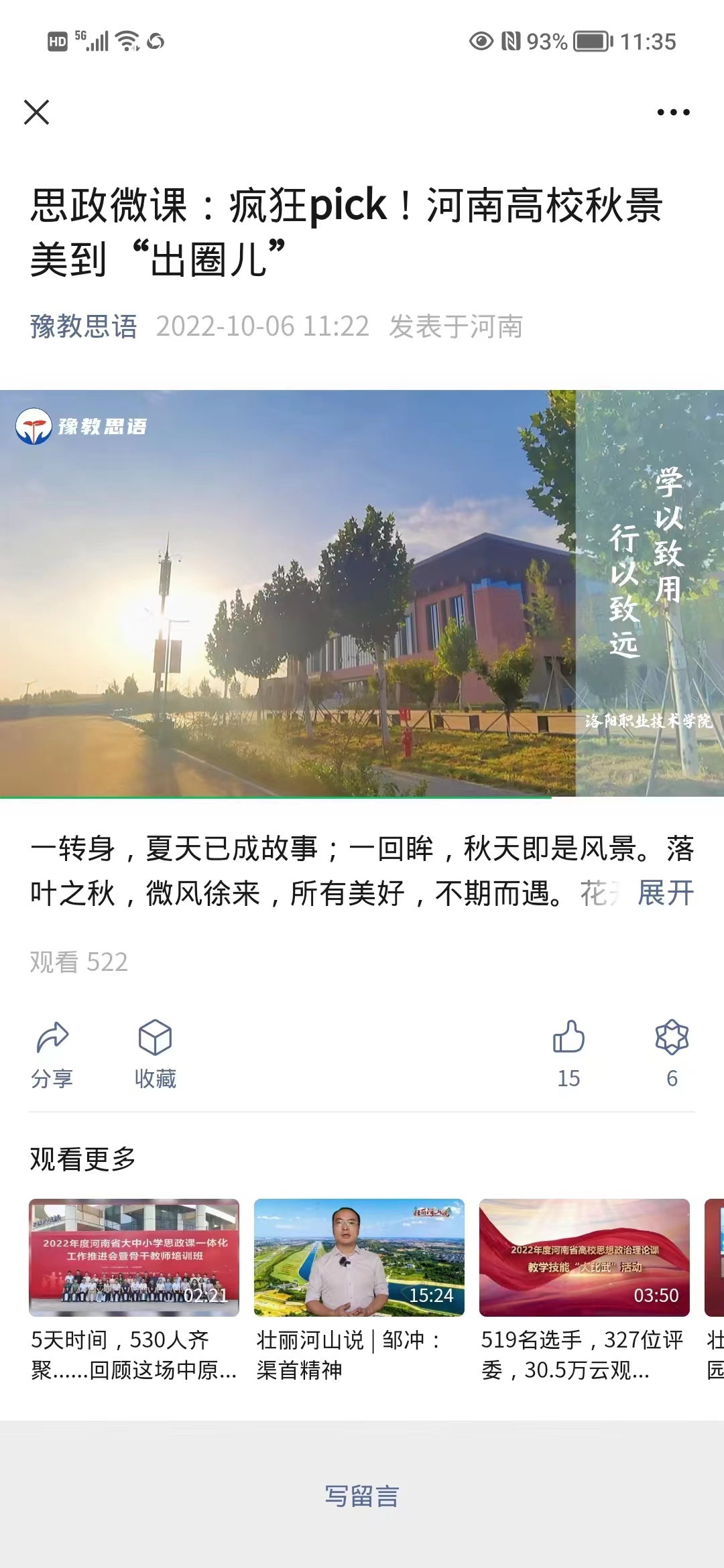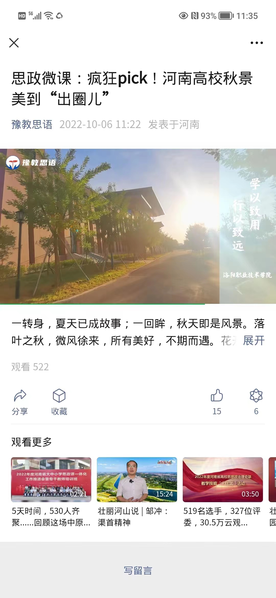 编者按:2022年10月6日,豫教思语视频号发布我校秋景照片。原图如下: