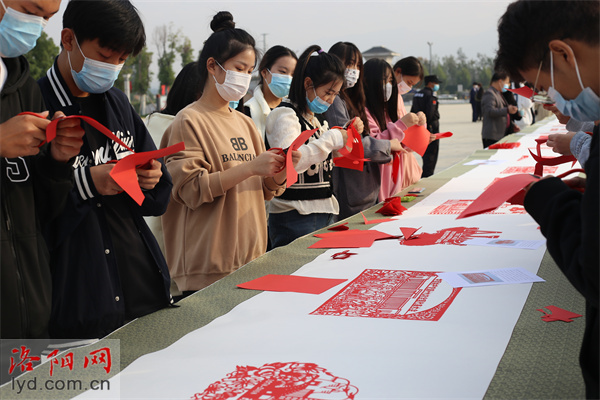 20日,洛阳职业技术学院开展“共剪同书爱党情 踔厉奋进新时代”活动,师生共同完成一幅长达100米的主题剪纸长卷最终创作。