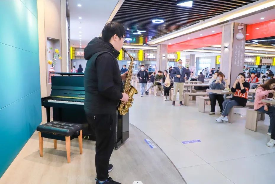 “我弹奏的是《雨的印记》。上小学的时候,我练习过两年的钢琴,虽然现在学习的是护理专业,平时很少有时间再去练习,但是看到餐厅里摆放着的钢琴,还是忍不住去弹奏了一段。”正在餐厅就餐的董永琦说。“能够在餐厅听到悠扬的琴声,特别意外,也特别惊喜。边吃饭边听音乐演奏,感觉饭菜都更香了。”