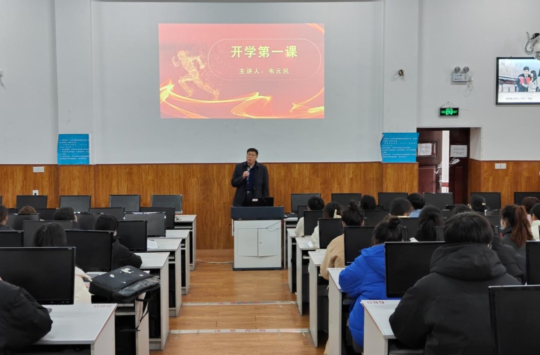 副校长韦元民在西工校区向会计学院120余名学生代表讲授开学第一课。韦元民向同学们讲述了我国防疫政策调整的必要性,以及新学期校园常态化管理的安排部署等。他表示,希望同学们继续提高防范意识,遵守学校防疫规定,保持良好的个人卫生习惯,当好自身健康的第一责任人,加强体育锻炼,以健康的身心状态面对未来的学习生活。他寄语广大学子要保持昂扬向上的精气神儿,将个人理想融入为祖国奉献、与时代同步的伟大征程中,做有理想、敢担当、能吃苦、肯奋斗的追梦人,要保持昂扬向上的精神风貌,心系家国,胸怀天下,展现新时代中国青年的担当和抱负,争做德技双修的未来工匠。