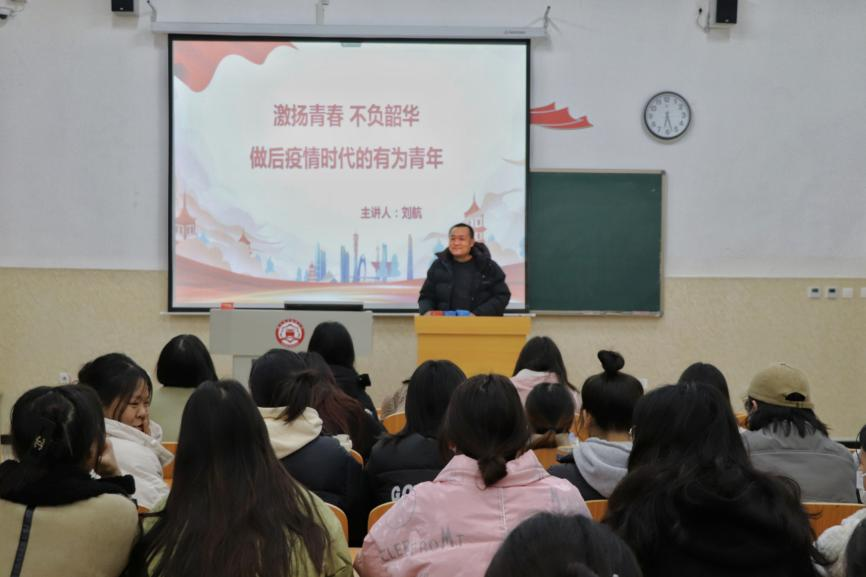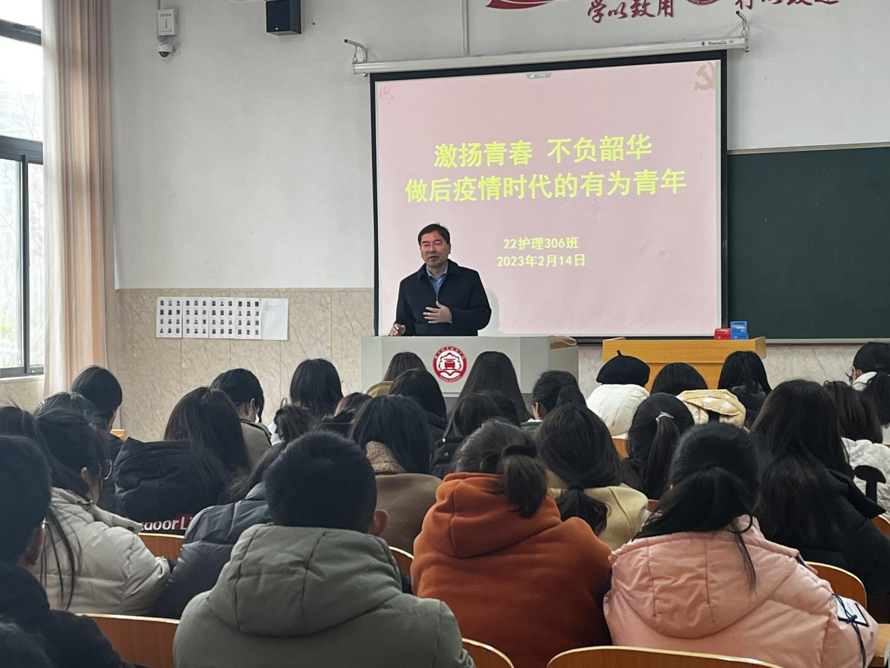 在护理与康养学院,副校长张志友分别从宣扬抗疫精神和成果、赞扬疫情时代医护人员、学习医护人员“大爱无疆”精神、彰显青年大学生责任和担当等四个方面进行讲授。张志友高度肯定了护理与康养学院学生在疫情防控期间为学校、社会做出积极贡献。他表示,新学期学校将回归常态化管理,物资准备充足、文体活动丰富多彩,学校将通过拓宽就业渠道、精简机构更好地为同学服务,希望大家在新的学期里,以党的二十大精神为指引,珍惜青春、振奋精神,练就过硬本领、担起时代使命,成长为有高度、有深度、有厚度的时代好青年,为实现中华民族伟大复兴贡献青春力量。