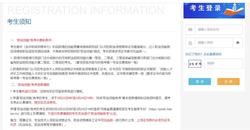 申请“职业技能”免考的考生,须于3月22日9时至3月24日18时,登录学校招生信息网(http://zjc.lypt.edu.cn/)完成“职业技能免考”基本信息填报和证明资料提交。审核通过的考生在学校官网公示,接受社会监督。审核不通过的考生需正常参加我校组织的职业技能测试或职业适应性测试。