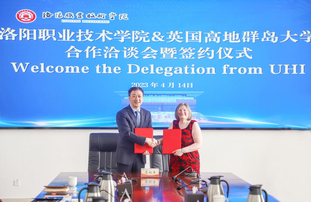 Veronica Lynch介绍了英国高地群岛大学的基本情况,以及在国际化人才培养中开展的诸多实践,对我校近些年在教学水平、师资力量和办学规模上所取得的成绩表示赞赏。她表示,高地群岛大学长期以来高度重视在校教学活动,希望能够和洛阳职业技术学院一起探讨教育国际化发展的可行路径,共同培养具备国际视角与跨文化能力的复合型人才。