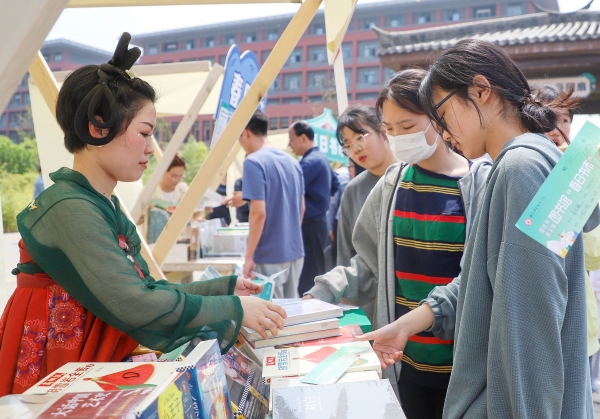 汉服飘飘,琴声袅袅,挥毫泼墨,书香四溢。4月19日,洛阳职业技术学院举办“迎接第28个世界读书日”春日书市活动。